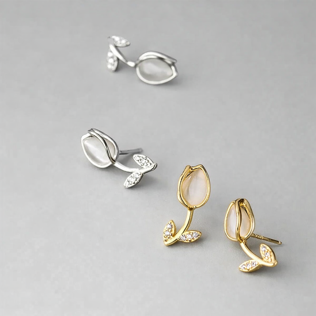 Különleges tulipános ezüst fülbevaló